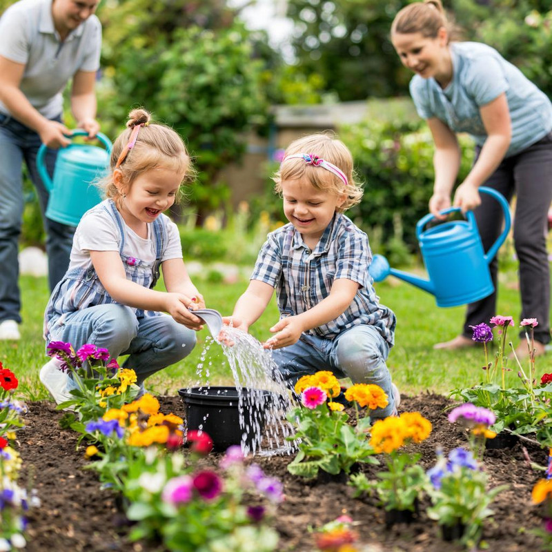 - Этап 3: Озеленение. Дети высаживают в горшки рассаду цветов (настоящую или искусственную) и устанавливают таблички «Берегите природу!», которые сделали заранее. Кадры: нежные моменты, когда ребенок поливает растение.
